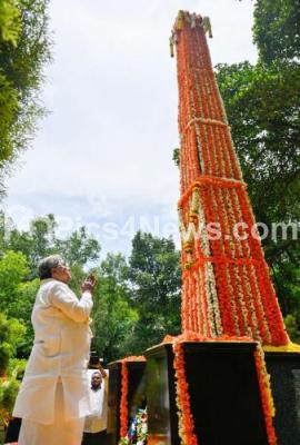 Photo Caption : Chief Minister of Karnataka Siddaramaiah laid a wreath on the occasion of National Forest Martyrs Day at Aranya Bhavan, in Bengaluru on Wednesday 11th September 2024