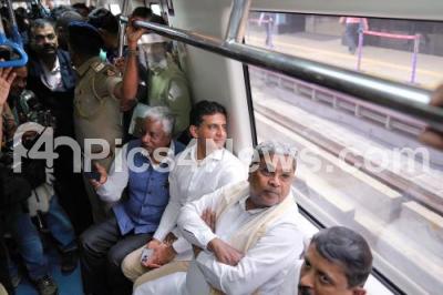 Photo Caption : Chief Minister of Karnataka Siddaramaiah travelled by Namma METRO with Ministers and MLAs during his city rounds, in Bengaluru on Thursday 12th September 2024