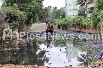 Photo Caption : BBMP workers cleaning rajakaluve at Hebbal , in Bengaluru on Thursday 12th September 2024