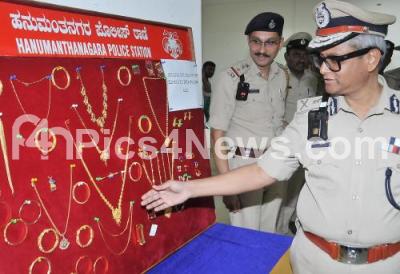 Police Commissioner Dayananda inspects the seized jewels during the property parade press conference at Police Commissioner office, in Bengaluru on Friday 13th September 2024