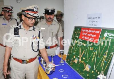 Photo Caption : Police Commissioner Dayananda inspects the seized jewels during the property parade press conference at Police Commissioner office, in Bengaluru on Friday 13th September 2024