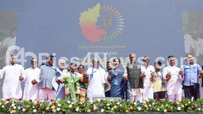 Photo Caption : Chief Minister of Karnataka Siddaramaiah with Council Chairman Basavaraj Horatti, Ministers, MLAs, MLCs, MPs and officials witnessed the longest Human Chain Movement about 2500 km from Bidar district to Chamarajanagar district on the occasion of International Democracy Day, organized in collaboration with the Social Welfare Department of the Government of Karnataka and other departments, in Bengaluru on Sunday 15th September 2024