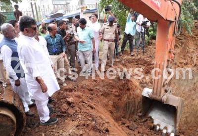 Photo Caption : DCM DK Shivakumar inspected the development of Cauvery Phase 5 work to provide drinking water to 110 villages under BBMP, at Kengeri Uttarahalli main road, also seen are MLA ST Somasekhar, BWSSB Chairman Ramaprasath Manohar and others, in Bengaluru on Monday 23rd September 2024