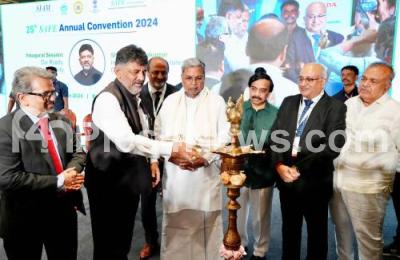 Photo Caption : Chief Minister of Karnataka Siddaramaiah with DCM DK Shivakumar, Transport Minister Ramalinga Reddy and others during the inauguration of 25th SAFE Annual Convention 2024 at a private hotel, in Bengaluru on Tuesday 24th September 2024