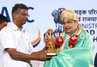 Photo Caption : Nitin Gadkari, Union Minister for Road Transport and Highway being felicitated by Satish Jarkiholi Minister of Public Works Department during the International seminar on "Advances in Bridge Management" at a private hotel, in Bengaluru on Thursday 26th September 2024