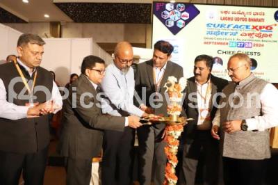 Photo Caption : Sachin Sabnis, President, Laghu Udyog Bharati with KB Kotresh, Regional Officer, KSPCB Davanagere (Retd), Sanjay P Bhat, President, Laghu Udyog Bharati and others during the inauguration of "Surfacexpo 2024" at Palace Grounds, in Bengaluru on Thursday 26th September 2024