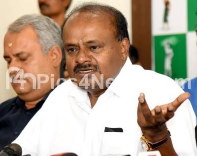 Union Minister HD Kumaraswamy addressing a press conference with JDS leaders at JP Bhavan, in Bengaluru on Saturday 28th September 2024