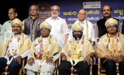 Photo Caption : "Parampara" puraskar being honored to senior achievers at a program organised by Prampara Cultural Foundation at Nayana, also seen are S Ramakrishna Adiga, KN Bhagavan and others , in Bengaluru on Saturday 28th September 2024