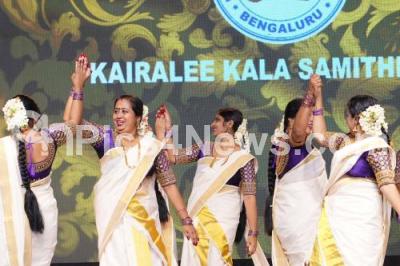 Photo Caption : Kerala women wing performing "Kaikottikali" during the Onatsovam 2024 organised by Kairalee Kala Samithi, in Bengaluru on Sunday 29th September 2024