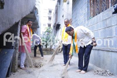 Photo Caption : Union Minister Pralhad Joshi with State BJP President Vijayendra and BJP leaders to take part in a cleaning programme to mark Mahatma Gandhi birth anniversary , in Bengaluru on Wednesday 2nd October 2024