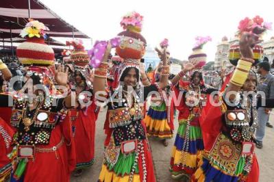 Photo Caption : Cultural program during the Jamboo Savari procession, as part of Dasara Festival 2024 celebrations, in Mysuru on Saturday 12th October 2024