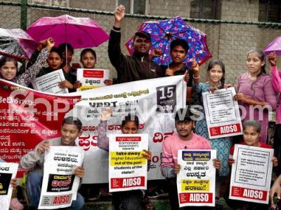Photo Caption : Students of AIDSO staged a protest in support of Davangere Bandh to save State government college UBDT, in Bengaluru on Tuesday 15th October 2024