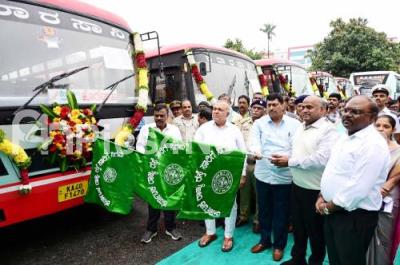 Photo Caption : Transport Minister Ramalinga Reddy with Board Chairman SR Srinivas, MD V Anbukumar and others during the 63rd Foundation Day of KSRTC at Shanthi Nagar, in Bengaluru on Wednesday 16th October 2024