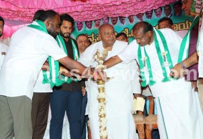 Event Description : JD(S) Supremo HD Devegowda with Union Minister HD Kumarswamy, Nikhil Kumarswamy and JD(S) leaders during the meeting on by-election candidate, in Channapatna on Tuesday 22nd October 2024