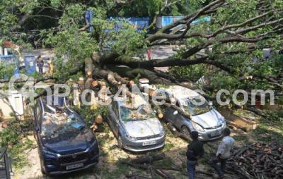 Photo Caption : A huge tree uprooted at Netkalappa circle Basavanagudi several cars were damaged due to rain, in Bengaluru on Wednesday 23rd October 2024