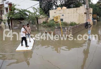 Photo Caption : Sai Layout is submerged in rain water after last night heavy rainfall, in Bengaluru on Thursday 24th October 2024