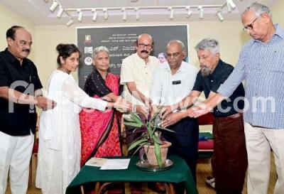 Photo Caption : Dr. Channappa Katti, President, Kuvempu Bhasha Bharati with Women Writers Association President, Dr. HL Pushpa, Sahitya Academy President, Mukundraj, Thinker Shudra Srinivas and others during the inauguration of Translation poetry workshop at Kannada Bhavan, in Bengaluru on Friday 25th October 2024