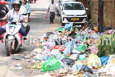Photo Caption : Garbage accumulated at Pipeline road Kurubarahalli, , in Bengaluru on Sunday 27th October 2024