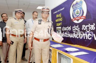 Event Description : Police Commissioner B Dayananda inspecting the seized drugs during the press conference on Property parade at Police Commissioner office, in Bengaluru on Tuesday 29th October 2024