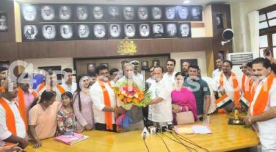 Photo Caption : Newly elected MLC Kishore Kumar taking oath in the presence of Legislative Council Chairman Basavaraj Horatti and Former Union Minister DV Sadananda Gowda at Vidhana Soudha, in Bengaluru on Wednesday 30th October 2024