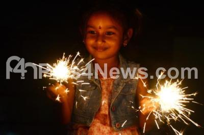 A girl bursting the firecrackers on the occasion of Diwali Festival, in Bengaluru on Thursday 31st October 2024