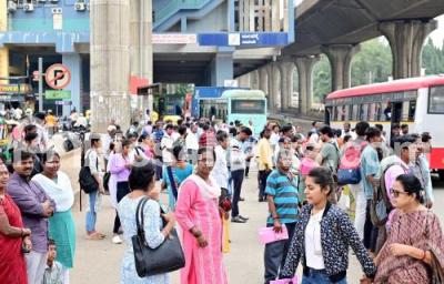 Event Description : People waiting for the busses at Jalahalli bus stand after festival holiday, in Bengaluru on Monday 4th November 2024