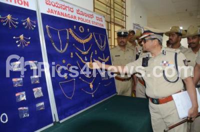 Photo Caption : Police Commissioner Dayananda B inspected the seized jewels during the press conference on property parade at Police Commissioner office, in Bengaluru on Tuesday 12th November 2024