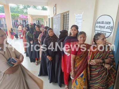 Photo Caption : People standing in the line to cast their vote for the Shiggaon by poll, in Shiggaon on Wednesday 13th November 2024