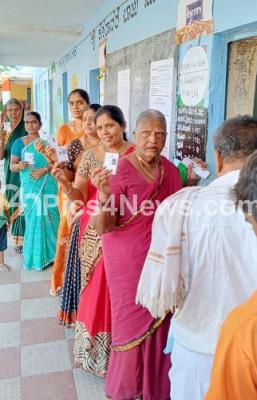 Photo Caption : People standing in the line to cast their vote for the Sandur by-poll, in Sandur on Wednesday 13th November 2024