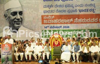 Event Description : Chief Minister of Karnataka Siddaramaiah and DCM DK Shivakumar offering floral tribute to Former PM Jawaharlal Nehru portrait on his birth anniversary program at Bharat Jodo Bhavan, in Bengaluru on Thursday 14th November 2024