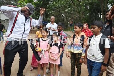 Photo Caption : A man performing puppet show during the "Chinnara Utsava" (Children Festival), at Balbhavan, in Bengaluru on Friday 15th November 2024