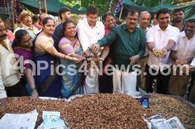Photo Caption : BK Shivaram, President Kadumalleshwara Gelayara Balaga and others during the inauguration of Kadlekai Parishe (Groundnut Festival) as part of Karthika Masa at Kadu Malleshwara Temple, in Bengaluru on Friday 15th November 2024