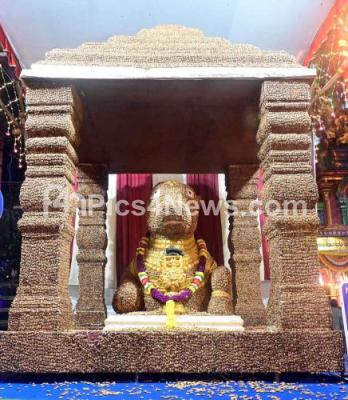 Photo Caption : Basava statue made with groundnuts during the inauguration of Kadlekai Parishe (Groundnut Festival) as part of Karthika Masa at Kadu Malleshwara Temple, in Bengaluru on Friday 15th November 2024