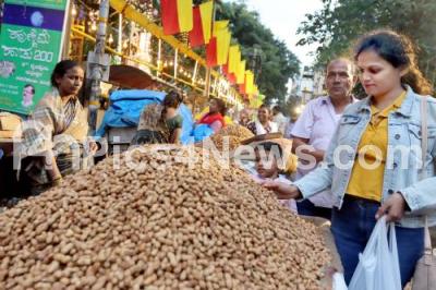 Photo Caption : People buying groundnuts during the Kadlekai Parishe (Groundnut Festival) as part of Karthika Masa at Kadu Malleshwara Temple, in Bengaluru on Friday 15th November 2024