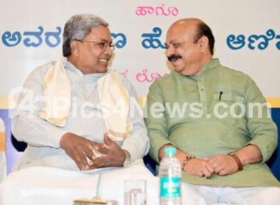 Photo Caption : Chief Minister of Karnataka Siddaramaiah and Former CM Basavaraj Bommai during the presentation of "Ramanashree Sharana Award - 2024" at a program organised by Akhila Bharatha Sharana Sahitya Parishat and Ramanashree Foundation , in Bengaluru on Monday 18th November 2024