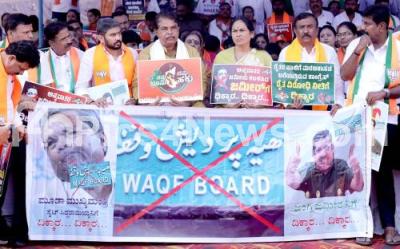 Event Description : BJP leaders R Ashoka, Shobha Karandlaje and others protest against the Waqf Board for encroaching on farmers land, in Bengaluru on Friday 22nd November 2024