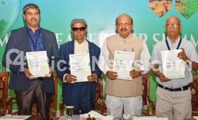 Photo Caption : Former Minister Dr. TB Jayachandra with Prof. NH Ravindranath, Expert UNFCCC, Dr. A Ravindra, Chairman, CSD and Dr. Srinivas R, Executive Director, CSD releasing CSD Activity Report during the "Climate Leadership Summit" at a Private Hotel, in Bengaluru on Tuesday 26th November 2024