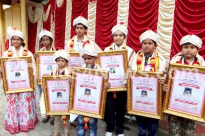 Photo Caption : State Level Hoysala Shourya Awardees during the Children Day 2024 celebrations at Bal Bhavan, in Bengaluru on Friday 29th November 2024