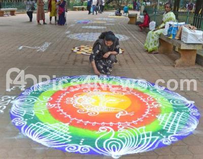 Photo Caption : Participants drawing Rangoli during the competition organised by Children and Women Welfare Department and Cubbon Park Walkers Association, as part of Children Day and Kannada Rajyotsava Celebrations at Cubbon Park, in Bengaluru on Saturday 30th November 2024