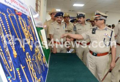 Photo Caption : Police Commissioner Dayananda inspects the seized jewels during the press conference on property parade at Police Commissioner Office, in Bengaluru on Tuesday 3rd December 2024