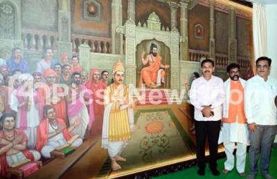 Event Description : Speaker UT Khader with Council Chairman Basavaraj Horatti, Chief Minister of Karnataka Siddaramaiah, DCM DK Shivakumar and Ministers during the unveiling of Anubhava Mantapa oil painting at Suvarna Soudha during the Winter Session, in Belagavi on Monday 9th December 2024