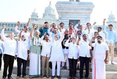 BJP MLAs and MLCs protesting against the lathi charge on Panchamasali protesters at Belagavi, in Belagavi on Thursday 12th December 2024