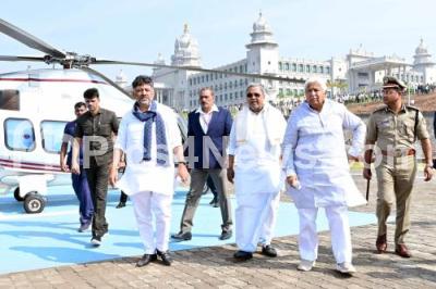 Photo Caption : Chief Minister of Karnataka Siddaramaiah and DCM DK Shivakumar arriving to attend the Assembly Session at Suvarna Soudha, in Belagavi on Friday 13th December 2024