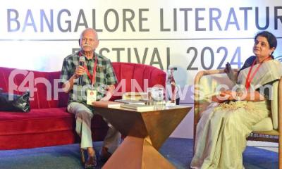 Photo Caption : Nadoja Hampa Nagarajaiah with M S Asha Devi during the Bengaluru Literature Festival, in Bengaluru on Saturday 14th December 2024