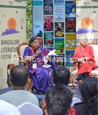 Photo Caption : Vanamala Vishwanath with Githa Hariharan during the Bengaluru Literature Festival, in Bengaluru on Saturday 14th December 2024
