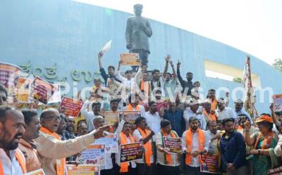 Photo Caption : BJP leaders and workers protesting against the State Congress government for arresting CT Ravi in Belagavi, in Bengaluru on Friday 20th December 2024