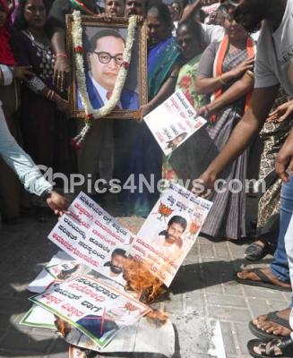 Event Description : Members of Congress Women wing and congress leader and workers protesting demanding the resignation of Union Home Minister Amith Shah for his remarks on Ambedkar, and BJP MLC CT Ravi for using derogatory remarks against Minister Lakshmi Hebbalkar, at KPCC office, in Bengaluru on Friday 20th December 2024