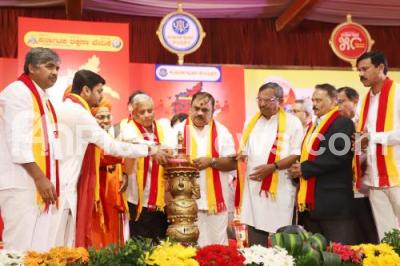 Photo Caption : Union Minister V Somanna with Narayan Gowda, President, Kannada Rakahsna Vedike, Vinay Guruji, Dr. RK Nallur Prasad, Kannada Activist and Senior Journalist (from Canada) BV Nagaraju and others during the inauguration of "Karnataka 50" Pledge ceremony at Palace Grounds, in Bengaluru on Saturday 28th December 2024