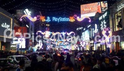 Event Description : Brigade Road is lit up with colorful lights for the New Year Celebrations, in Bengaluru on Sunday 29th December 2024