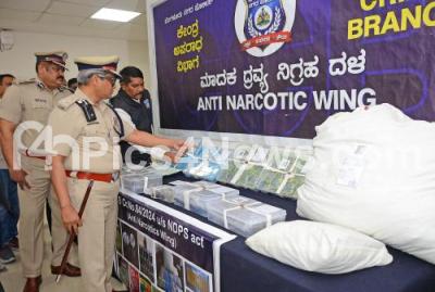 Police Commissioner Dayananda inspects the seized marijuana which were seized by Anti Narcotic Wing during the press conference at Police Commissioner office, in Bengaluru on Tuesday 31st December 2024